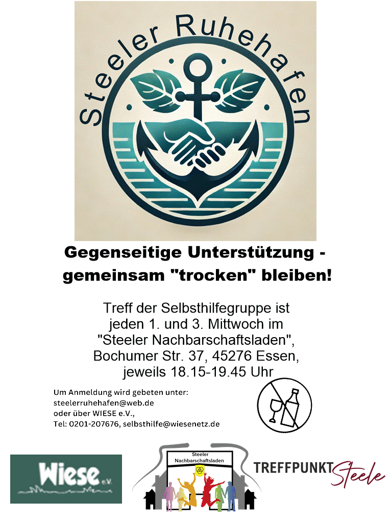 Der Steeler Ruhehafen, die unterstützenden Gemeinschaft für trockene Alkoholiker in Essen-Steele seit 2025